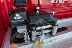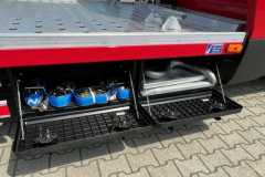 długość zabudowy 4940 mm, najazdy 2100 mm chowane do środka zabudowy, blokada najazdów siłownikami, niski pałąk, skrzynka narzędziowa ,oświetlenie tylne oryginalne, oświetlenie obrysowe LED, zgodne z przepisami o ruchu drogowym, oświetlenie robocze – 2 halogeny LED na pałąku, hak holowniczy dolny o maksymalnym dopuszczalnym uciągu do 3,5t, dodatkowa kula haka z przodu zabudowy do transportu przyczep gniazda elektryczne 13pin/7 pin osłony rowerowe podwójne oklejane w kolorze nadwozia lakierowanie zabudowy w kolorze nadwozia wciągarka elektryczna superwinch Tiger Shark 9500 z pilotem bezprzewodowym, stelaż wciągarki przesuwny, ogrzewanie postojowe WEBASTO kabina sypialna Spojkar Slim – lakierowana, elektryczna blokada trapów + pilot